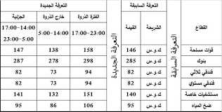 وقسّمت التعرفة الجديدة اليوم إلى ثلاث فترات زمنية بحسب الأحمال الكهربائية الفعلية المعتمدة في المنوال التشغيلي للنظام الكهربائي، وتشمل فترة الذروة من الساعة 5 مساءً إلى الساعة 11 ليلاً، الذروة الجزئية (فترتان) من الساعة 2 مساءً إلى 5 مساءً ومن الساعة 11 ليلاً إلى 5 صباحاً، والفترة خارج أوقات الذروة من الساعة 5 صباحاً إلى الساعة 5 مساءً.